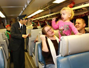 Our First Class passengers are treated to cheery service in traditional railroad fashion while enjoying spacious seating in very special vintage railroad equipment. Get extraordinary views of the approaching The North Pole as Santa and his elves greet the train and all the passengers on board. An exclusive souvenir mug completes first class service, and let’s not forget to mention a delicious cookie and a wink from Santa as he walks through the train greeting each child!